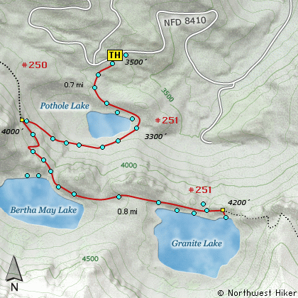 you to a more heavily forested area just above the first lake, Pothole Lake.