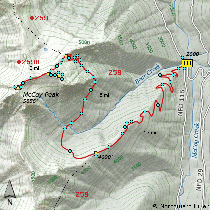 Forest Road 115 on your right. Bear right and follow FR115 down a steep incline and