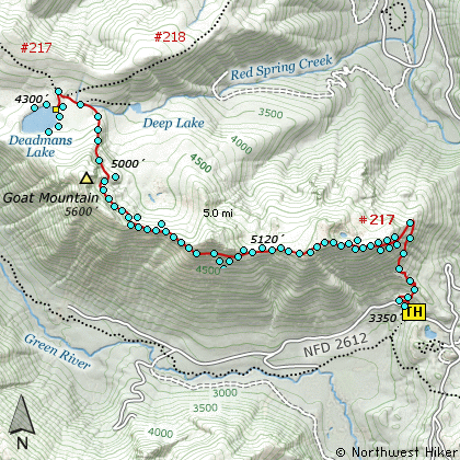 the Goat Mtn TH. You continue on for a about 3.7 miles and you will pass the spur
