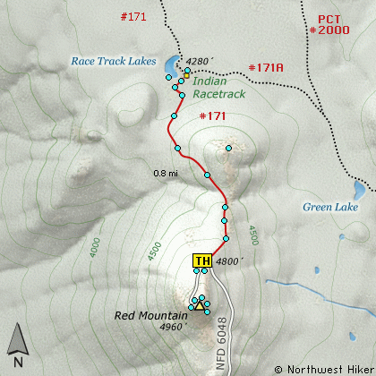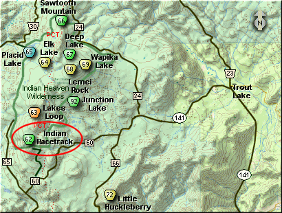 Here is a fun little hike loaded with natural beauty as well as native history. The Indian Race Track hike begins off Forest Road 6048 near the summit of Red Mountain just outside of the Indian Heaven Wilderness.