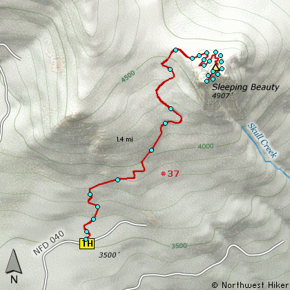 Talk about bang for your buck, this little hike is a real gem tucked away in a mostly logged area. The trail begins off Forest Road #040, which is just a short ways off FR #88.