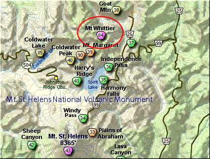 If however, you plan to approach this hike from the Columbia River Gorge area, then begin at Carson, Washington and head northwest on the Wind River Hwy. In 7.5 miles you will pass through the little community of Stabler, and in another 5.8 miles you will come to the junction of Forest Road 30. Turn right onto FR30 and follow this road for 13.2 miles north along the Wind River and then up a steep incline and onto a plateau where you will come to the junction of the Curly Creek Road. Turn left onto the Curly Creek Road and follow it downhill past an excellent view area for about 5.1 miles until you come to Forest Road 90. Turn left onto FR90 and follow it for about 4.1 miles. You will descent to and cross the Lewis River then come to the junction with Forest Road 25. Make a sharp right turn onto FR25. Follow FR25 north for approximately 25 miles, passing the Cedar Flats Natural Area, and the junction to Forest Road 93, which takes you to the Craggy Peak hike and the Hat Rock Overlook hike, past Elk Pass and the junction of Forest Road 28 which leads to the Craggy Peak hike, and finally you will come to Forest Road 99 on your left, which is the road that leads to the Windy Ridge side of the Mt. St. Helens National Volcanic Monument and many hikes.