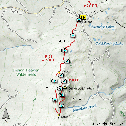 Map of the Sawtooth Mountain, Indian Heaven Wilderness Hike