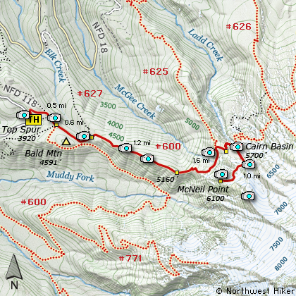 Note: This is the same trailhead for McNeil Point, and the Bald Mtn. Overlook hikes. You can also hike to Cairn Basin from here.