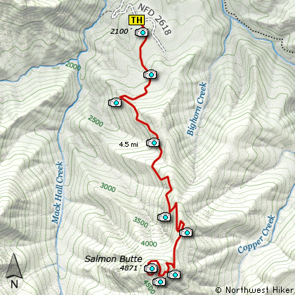 Map of the Salmon Butte, Salmon Huckelberry Wilderness Hike
