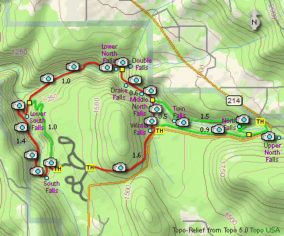 Features: Here is another Oregon State Park gem. Nearly any season you choose to enjoy hiking in this park, you will not be sorry. For this website, I chose to park in the main parking area and do a figure eight loop hike which includes most of the major waterfalls.